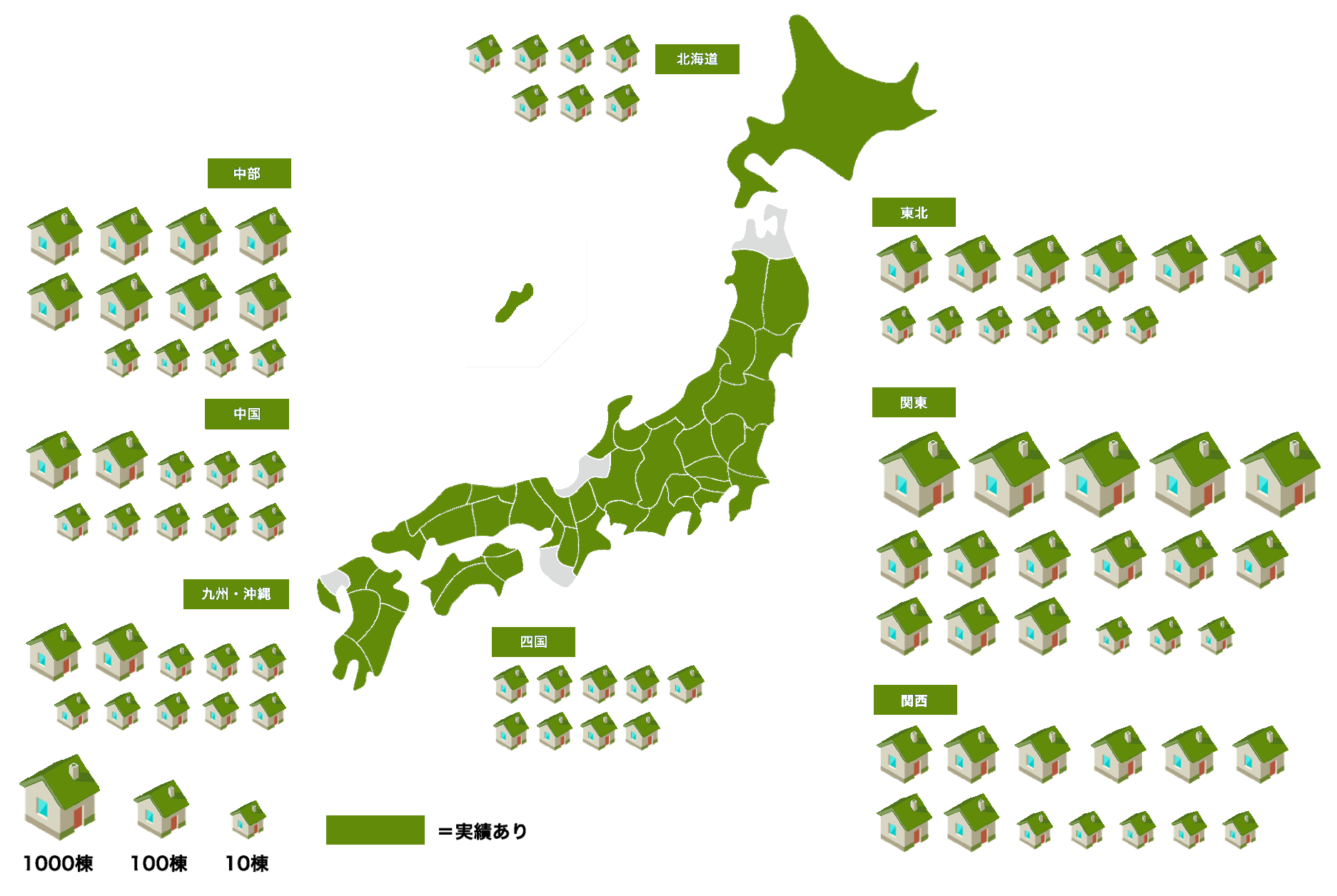 全国各地で約9000棟の設計実績があります。遠方のお客様からは構造計算・構造図の設計のご依頼を頂くケースが多いですが、全国対応の審査機関に確認申請を出すことで、構造設計に加えて意匠設計〜申請業務までご依頼いただくケースもあります。建売住宅だけでなく、共同住宅やサービス付き高齢者住宅などの大型物件の設計経験も豊富にあります。